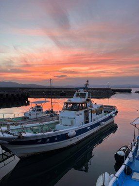 SeaKarenのアプリで船を選んで相乗りすれば、ゆっくり豊島の美しい夕暮れを眺めて帰れます。